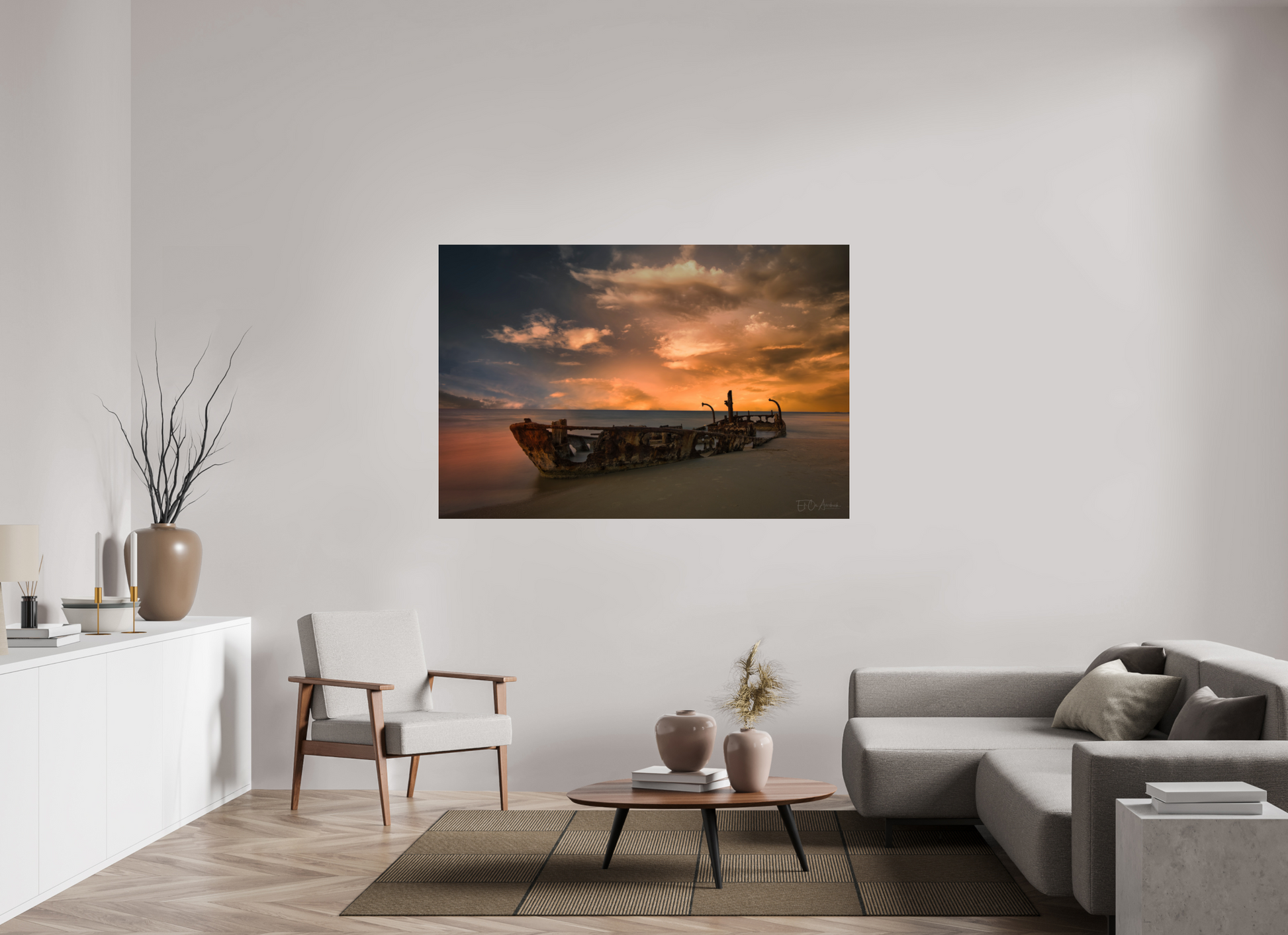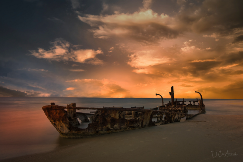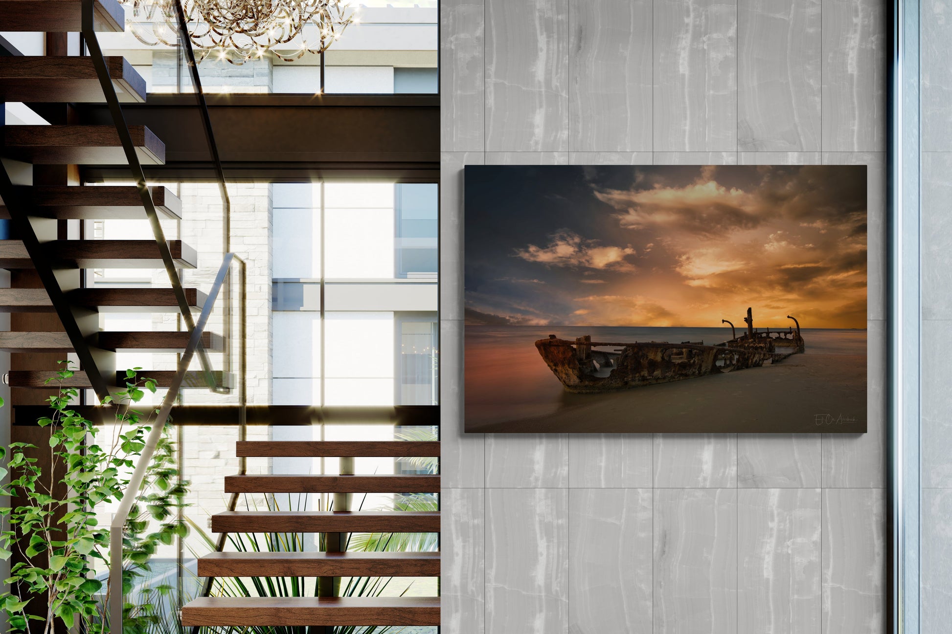 2/2 The shipwrecked fishing boat on the Hof HaBonim shore. It is an ancient fishing vessel, the remains of which are clearly visible along the Hof HaBonim coastline.