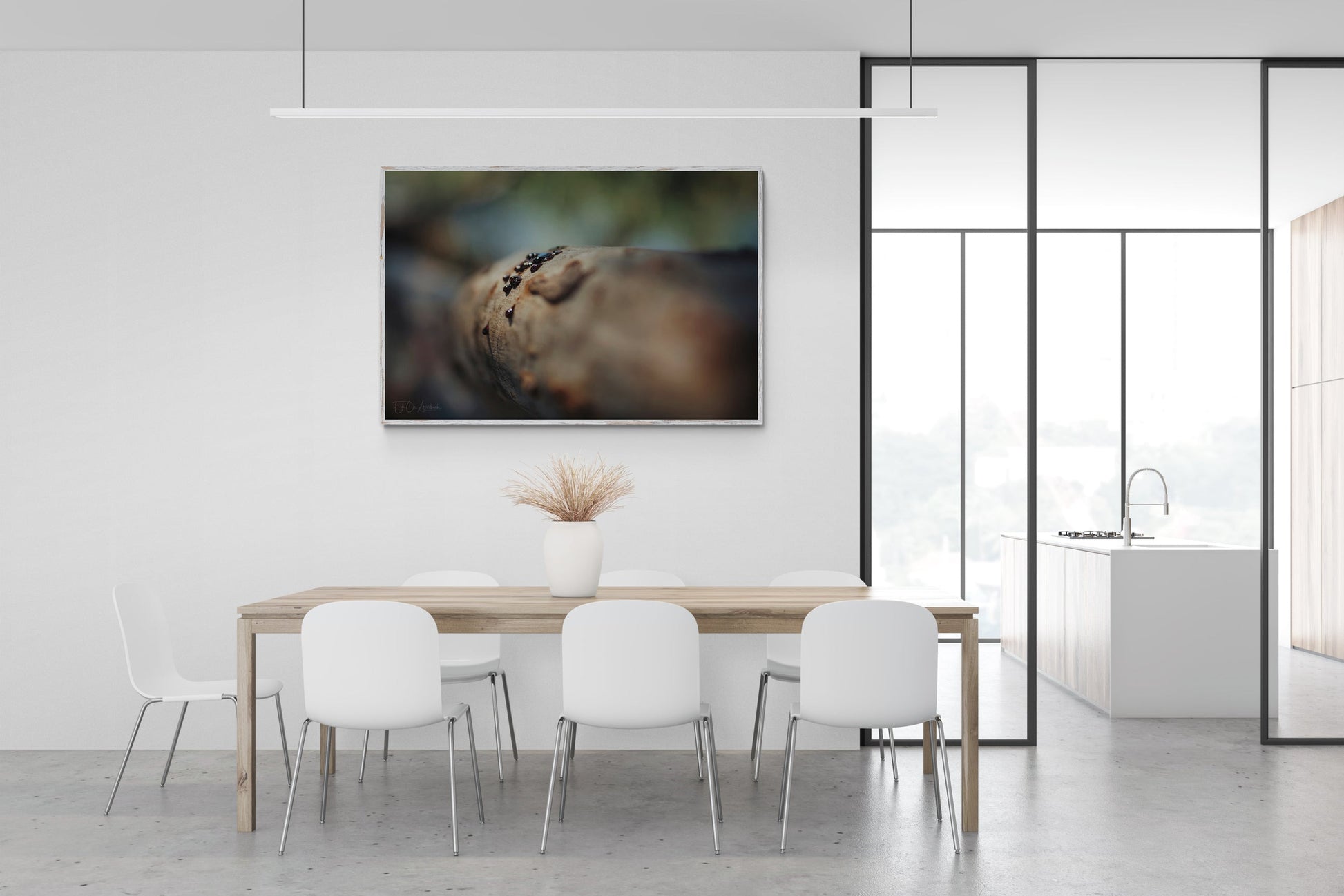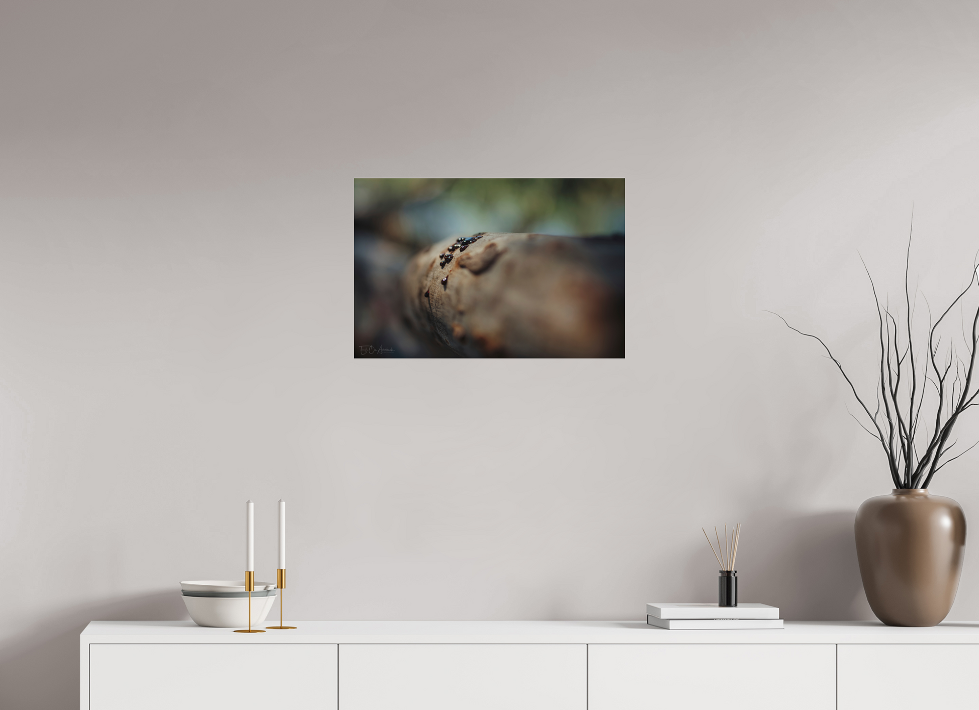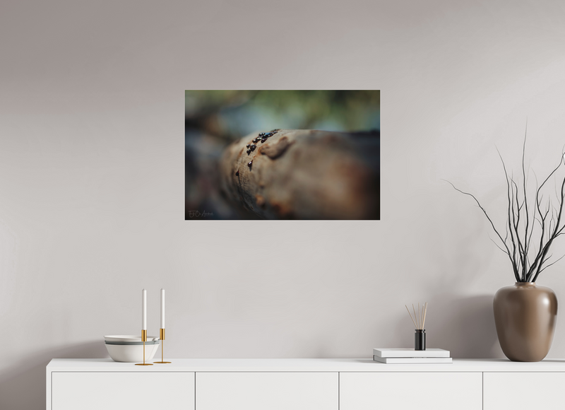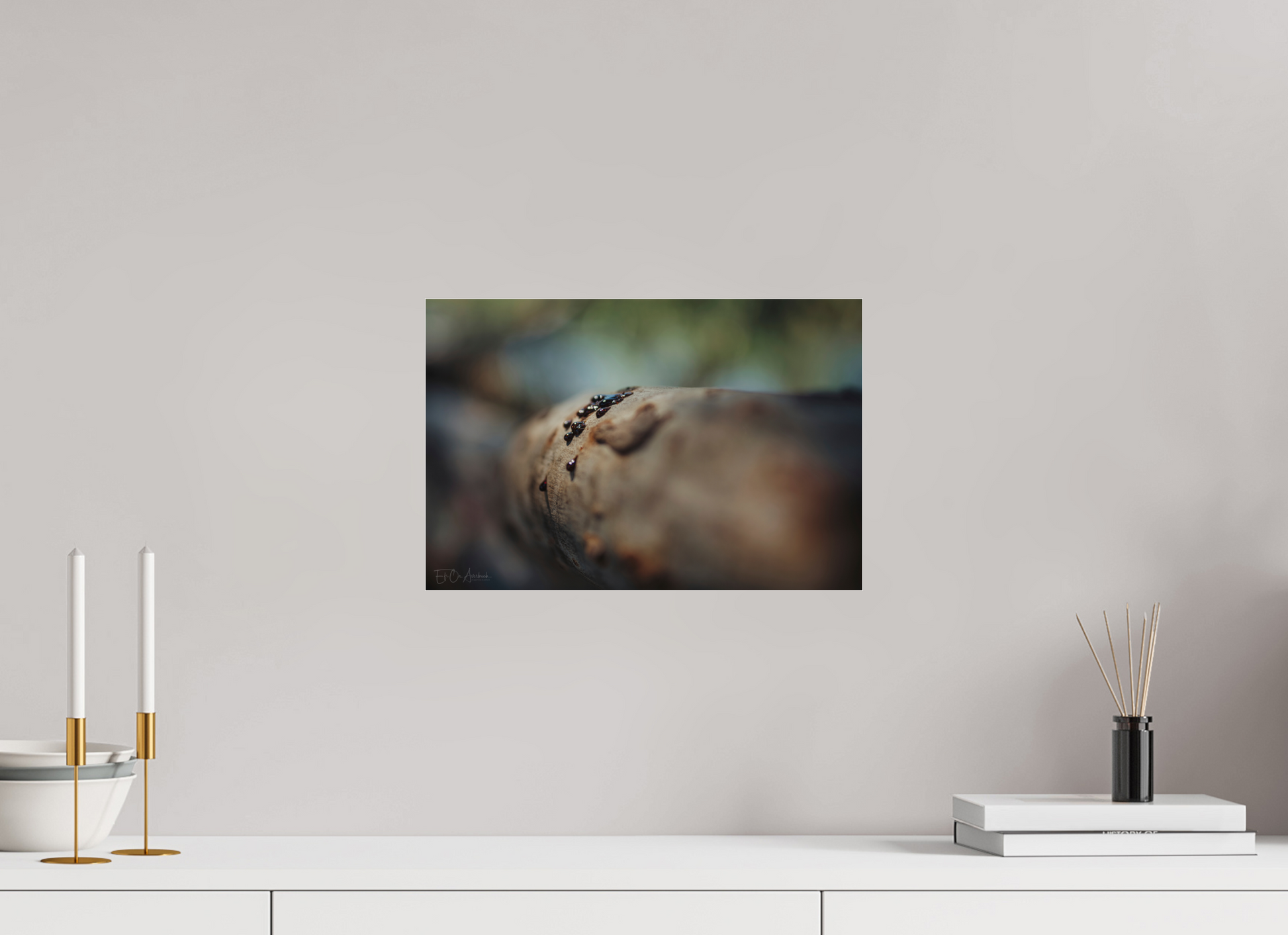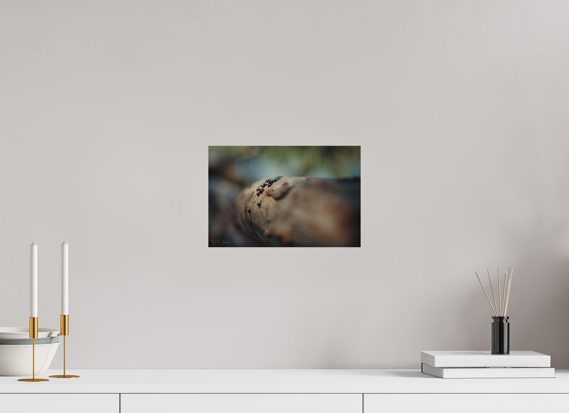 This close-up moment captures nature’s intricate details: the texture of the wood, the sheen of the resin, and the sense of stillness in a living organism at rest.
