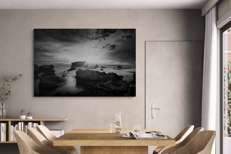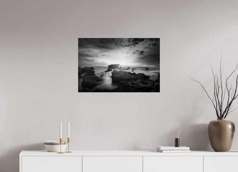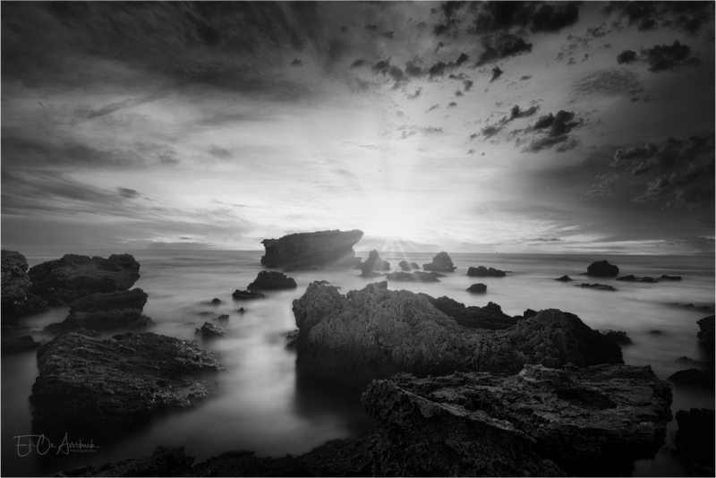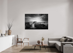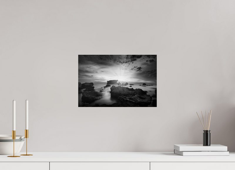 A peaceful sunset captured along the Mikhmoret coastline, where warm tones of orange and pink melt into the calm blue sea. The soft light, gentle waves, and open sky create a serene atmosphere that brings the beauty of the Israeli seashore into any space. A moment of quiet captured in nature’s perfect light.